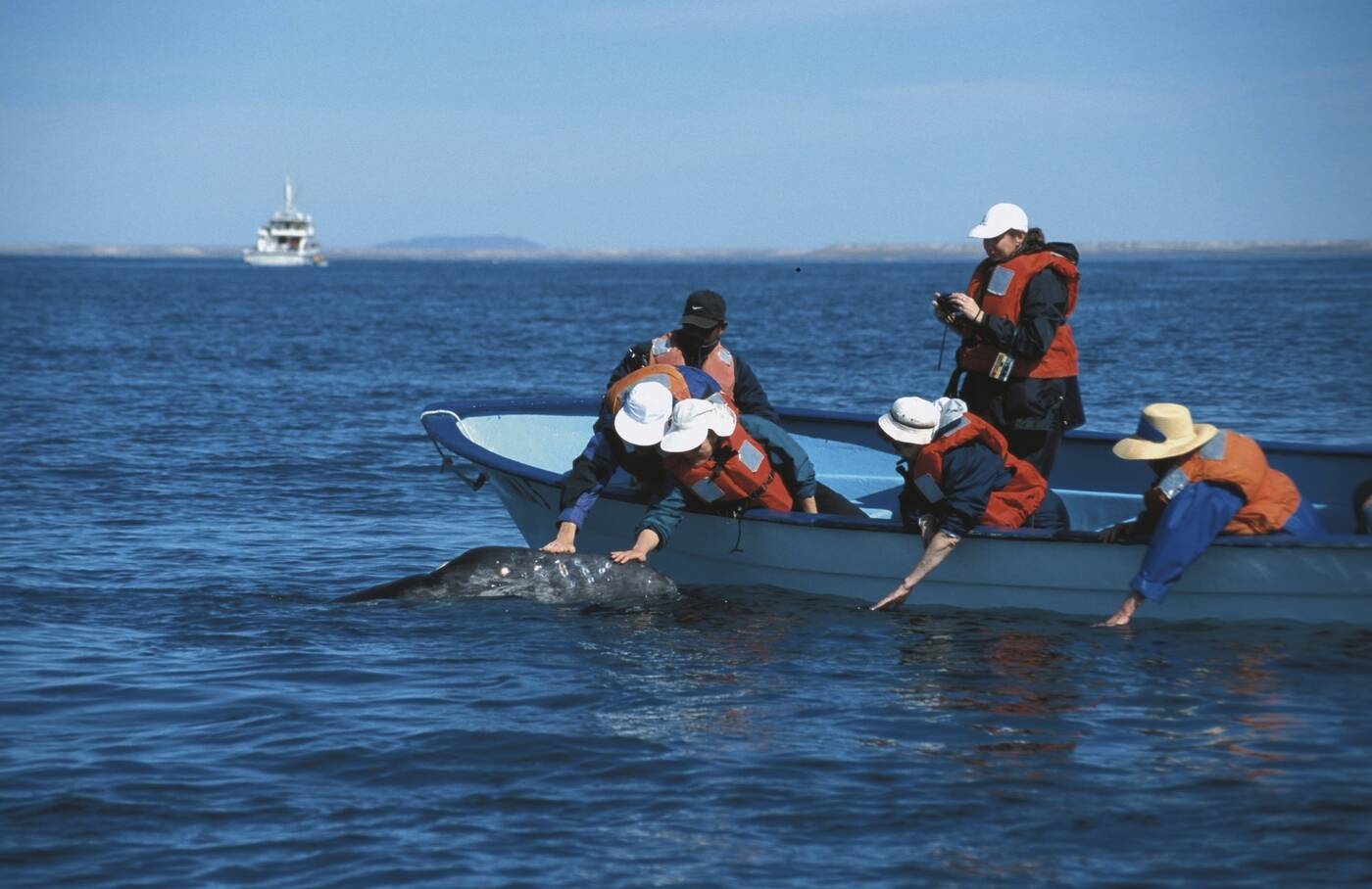Wir fahren durch die Installationen der Salzgewinnungsanlage von Guerrero Negro zum Walbeobachtungspier, von dem Sie mit Panga-Booten (wendige Motorboote) hinaus auf die Lagune Ojo de Liebre fahren, um die amerikanischen Grauwale in ihrer natürlichen Umgebung zu beobachten. Unser Ausflug kann entsprechend den Witterungsverhältnissen durchaus nass und anstrengend sein.