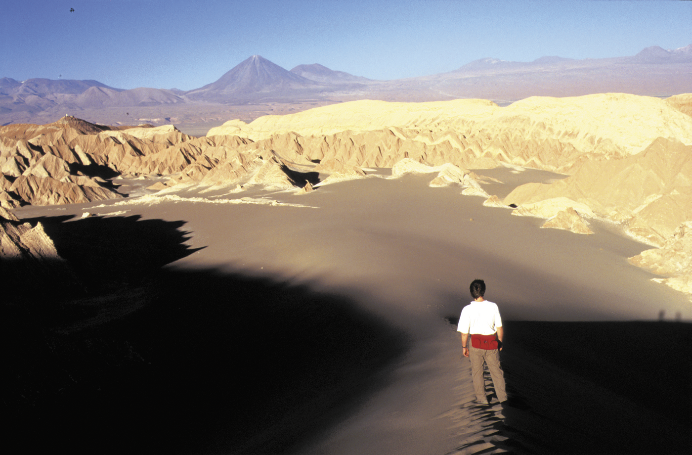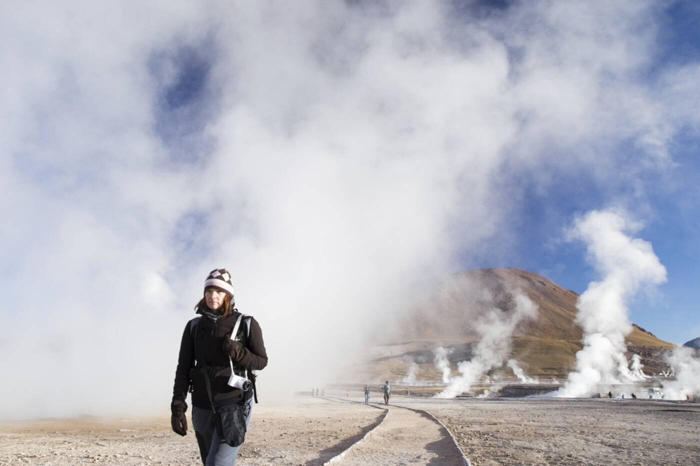 Für alle Frühaufsteher ein Muss ist die anstrengende Fahrt hinauf und hinein in das Morgengrauen zum Geysirfeld von El Tatio (4.300m), wo ca. 40 Geysire täglich zum Sonnenaufgang ein spektakuläres Schauspiel bieten und ihre Fontänen in die kalte Andenluft schießen (240 km). Zum Sonnenuntergang empfehlen wir einen Besuch des Mondtals mit bizarren Gesteinsformationen und dem fast 6.000m hohen Lincancábur Vulkan im Hintergrund.