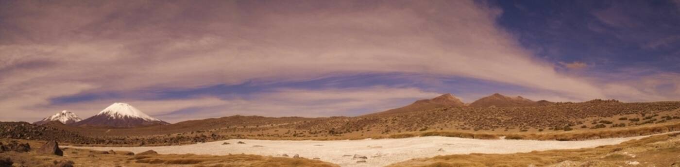 Von der Pazifikküste aus Fahrt durch das Azapa Tal hoch hinauf in die Anden. Auf dem Weg dorthin sehen wir hoffentlich Guanacos und Vicuñas, lernen "Bofedales" kennen, Sumpfgebiete, die die Basis des altiplanischen Ökosystems darstellen und kommen durch entlegene Dörfer. An den heißen Quellen der Jurasi-Therme können wir uns ein entspannendes Bad gönnen. Zwei Übernachtungen in Putre dem Tor zum Lauca Nationalpark (3.500m, ca. 140 km).