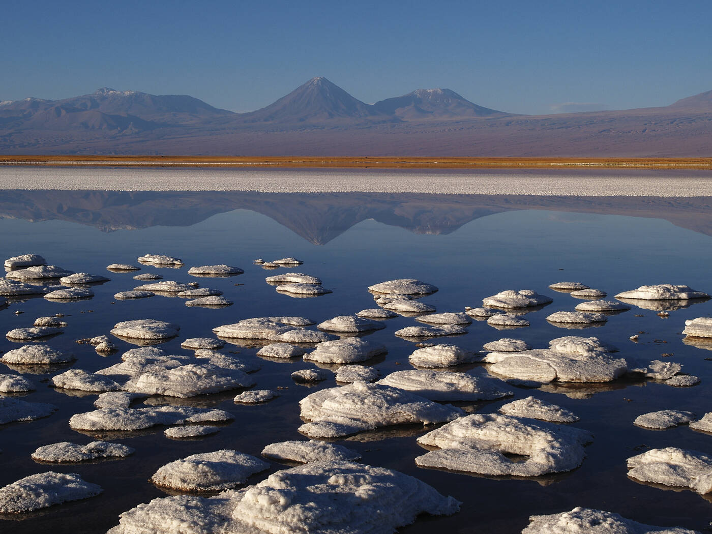 Es empfiehlt sich ein Ganztagesausflug, zunächst zu den Lagunen Miscanti und Miniques auf 4.300m. Die Fahrt führt durch die mit Polstern aus Steppengras bewachsene Hochebene vorbei an beeindruckenden Vulkanen. Die beiden tiefblau leuchtenden Lagunen bilden einen wunderbaren Aussichtsplatz auf den Gipfel des 5.622m hohen Miscanti. Nachm. weiter zum 3.000 qkm großen Salar de Atacama, drittgrößter Salzsee der Welt, mit der Chaxa-Lagune, Flamingos und zahlreichen anderen Vogelarten.