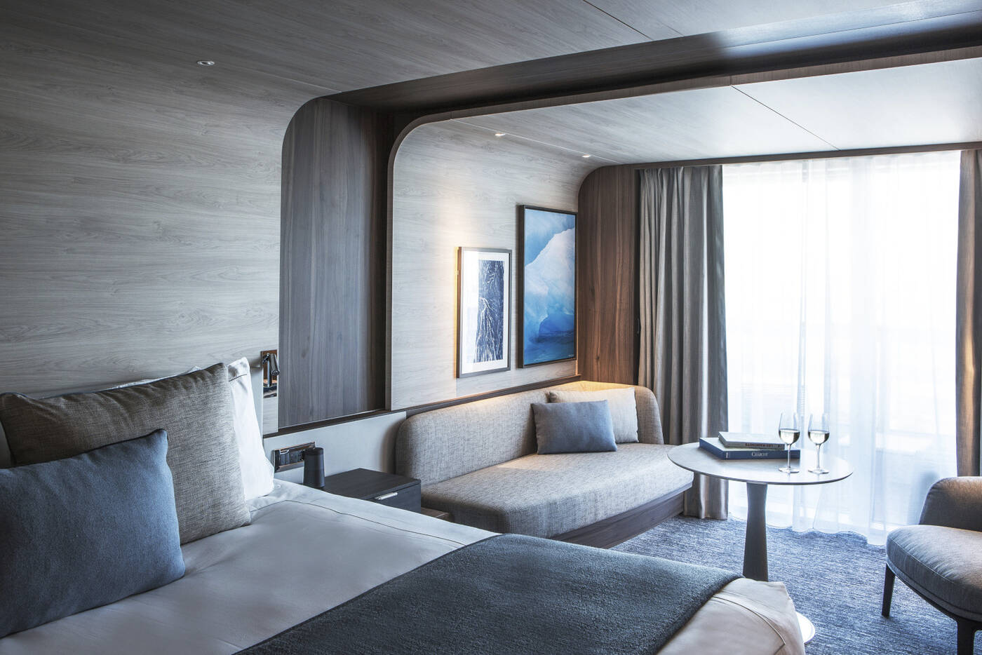 Alle Kabinen verfügen über eine Minibar, Espresso-Kaffeemaschine, Wasserkocher, 24-Stunden Room-Service, Flachbildfernseher, Satelliten-TV und Filmauswahl, iPod-Docking-Station, Safe, Föhn, ausgewählte Pflegeprodukte, Telefon per Satellitenleitung, 110/220 Volt- Steckdosen, kostenfreier Internetanschluss und Wlan-Zugang.