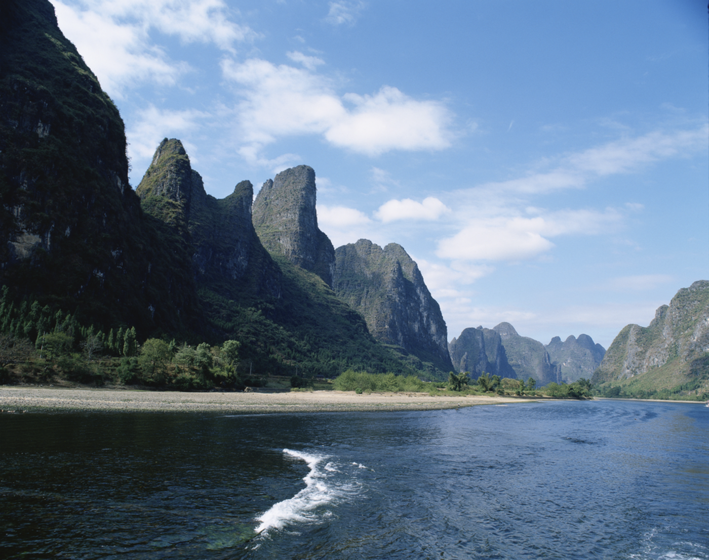 Nach dem Frühstück fahren wir zum Pier und unternehmen eine Bootsfahrt auf dem Li-Fluss. Während der Kreuzfahrt genießen wir das Mittagessen an Bord und genießen die eindrucksvolle Landschaft mit Karsthügeln und Bambushainen, darunter auch das berühmte Panorama, das auf der chinesischen 20-Yuan-Banknote abgebildet ist. Am Nachmittag erreichen wir Yangshuo. Der kleine Ort lädt zu einem Spaziergang durch die lebendigen Gassen mit Geschäften und Cafés ein.