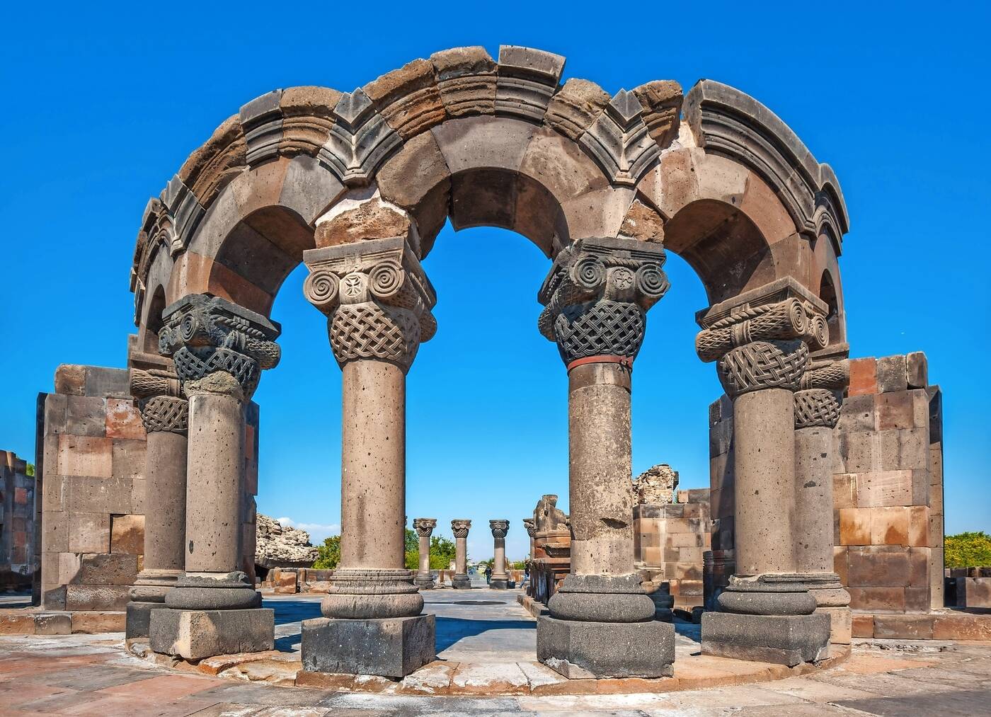 Vormittags Stadtrundfahrt in Jerevan bis zu einem Aussichtpunkt mit Panoramablick über die Stadt. Kaffeepause bei einem Musiker, der das armenische Nationalinstrument Duduk aus Aprikosenholz schnitzt und spielt, dem wir in seinem schönen Garten lauschen können. Nachmittags Fahrt vorbei am Dorf Mussa Ler mit dem Memorialkomplex für den Widerstand von Musa Dagh (bekannt durch den Roman von Franz Werfel), nach Etschmiadsin, Zentrum der armenischen autokephalen Kirche und Sitz des Katholikos. Außenbesichtigung der Hauptkathedrale (303 n. Chr./Z.Zt. wegen Renovierung nur von außen zu besichtigen). Auf dem Rückweg nah Jerevan Besuch der Ruinen der Palastkirche Zvartnots. Spaziergang durch den Park mit wunderschönen Kreuzsteinen.