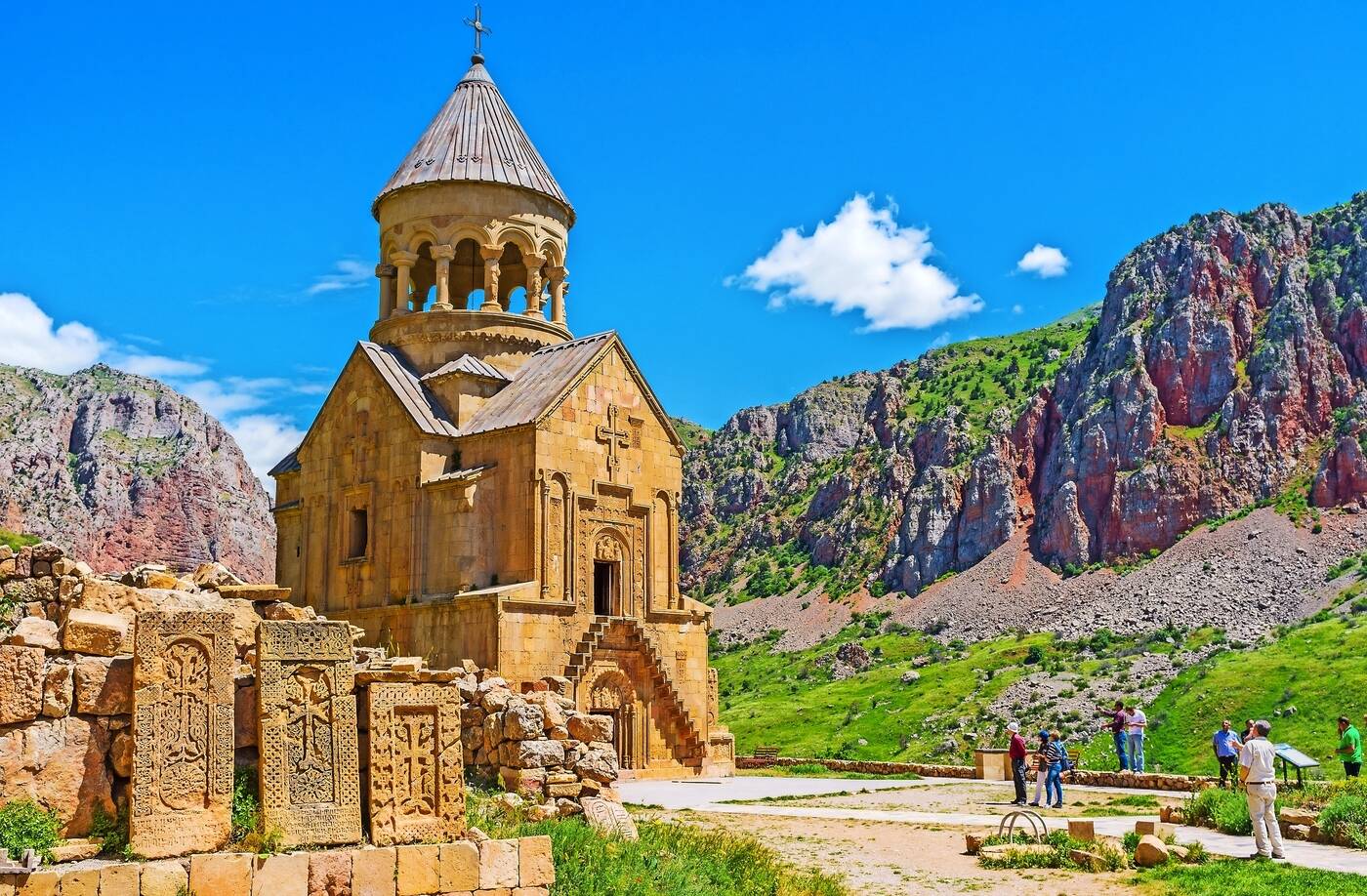Heute Fahrt zum am Fuße des Ararat gelegenen Klosters Chor Virab, kurz vor der geschlossenen Grenze zur Türkei. Besichtigung des Klosters, das eng mit der Christianisierung Armeniens verbunden ist. Dann zum Kloster Noravank, einstiger Bischofssitz. Mittagessen in einem Restaurant mit einheimischen Spezialitäten. Auf der Rückfahrt nach Jerevan Weinprobe auf einem Weingut.