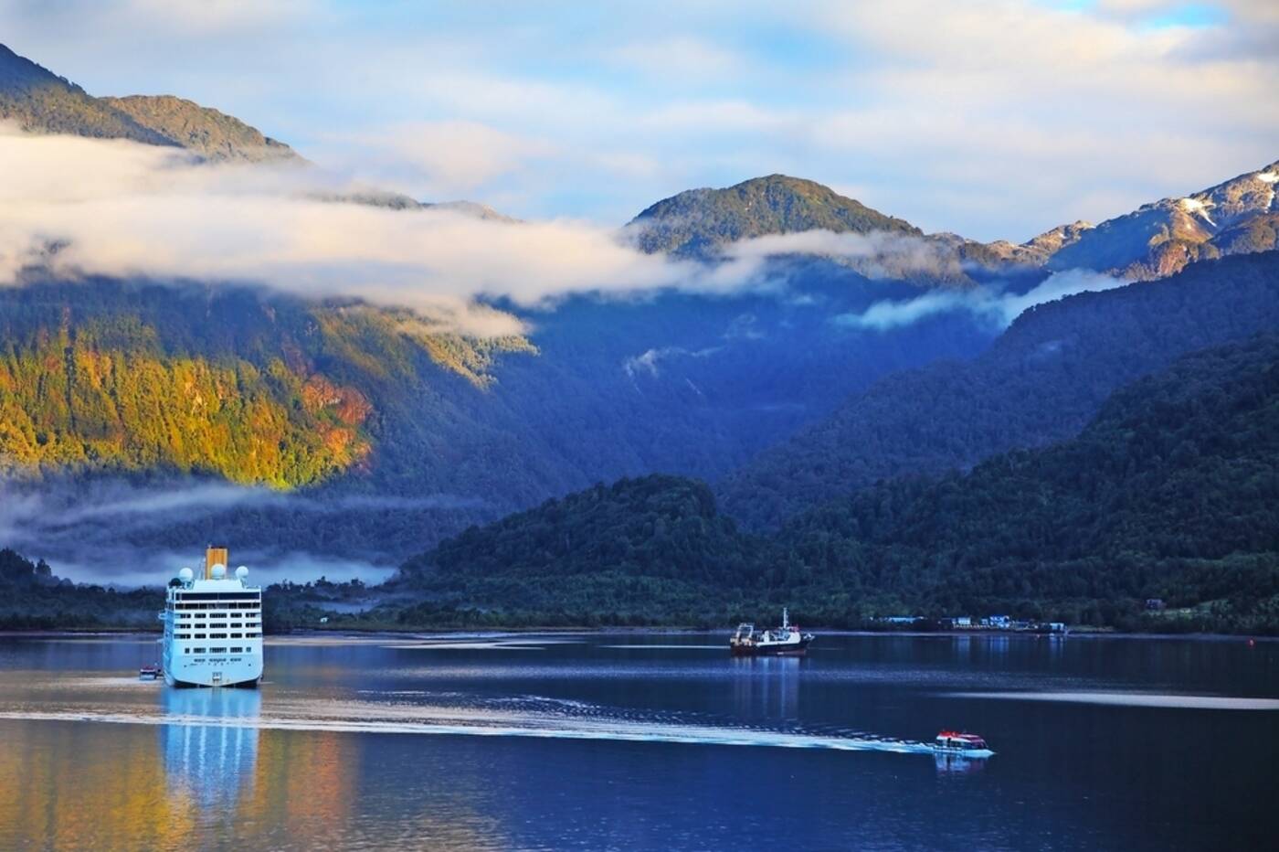 Im Herzen des chilenischen Patagoniens liegt der Nationalpark Bernardo O’Higgins. Über mehr als 320 Kilometer erstreckt sich der Park von einem Ende zum anderen und umfasst das südliche Inlandeis Patagoniens, das zusammen mit seinem nördlichen Gegenstück eine der größten Gletscherflächen außerhalb der Polarregionen bildet. Wir segeln durch den Montañas-Fjord, einen langen Fjord, der von zerklüfteten Bergen und mehreren Gletschern gesäumt ist.