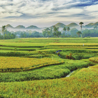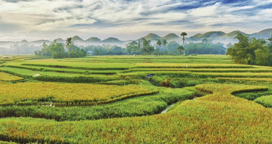An Bord eines Flussschiffes genießen wir eine gemütliche Fahrt auf dem malerischen Loboc-Fluss, während wir in Begleitung einheimischer Musiker ein Mittagessen in Buffetform mit lokalen Köstlichkeiten genießen. Nach einer traditionellen Gesangs- und Tanzvorstellung der Einheimischen, besuchen wir die Tarsier-Conservation Area, um den kleinsten Primaten der Welt zu sehen, der kaum größer ist als eine Mango und als eine bedrohte Art gilt - der Koboldmaki. Von einem Aussichtspunkt bewundern wir die kakaofarbenen Chocolate Hills mit ihren symmetrischen Hügeln.