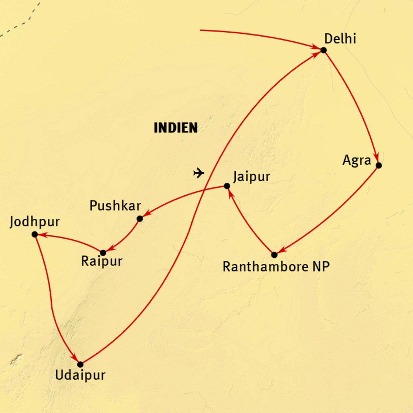 - Besuch bedeutender kulturhistorischer Höhepunkte wie das Taj Mahal, das Amber-Fort, der Stadtpalast in Udaipur oder die Tempel von Nathdwara