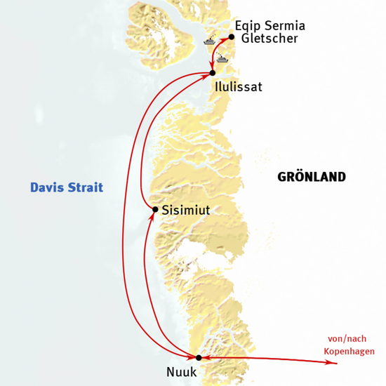 - Ausflüge wie u.a. Stadtrundgänge und Bootsfahrt zum UNESCO-Weltnaturerbe Ilulissat-Eisfjord sind im Reisepreis bereits inklusive