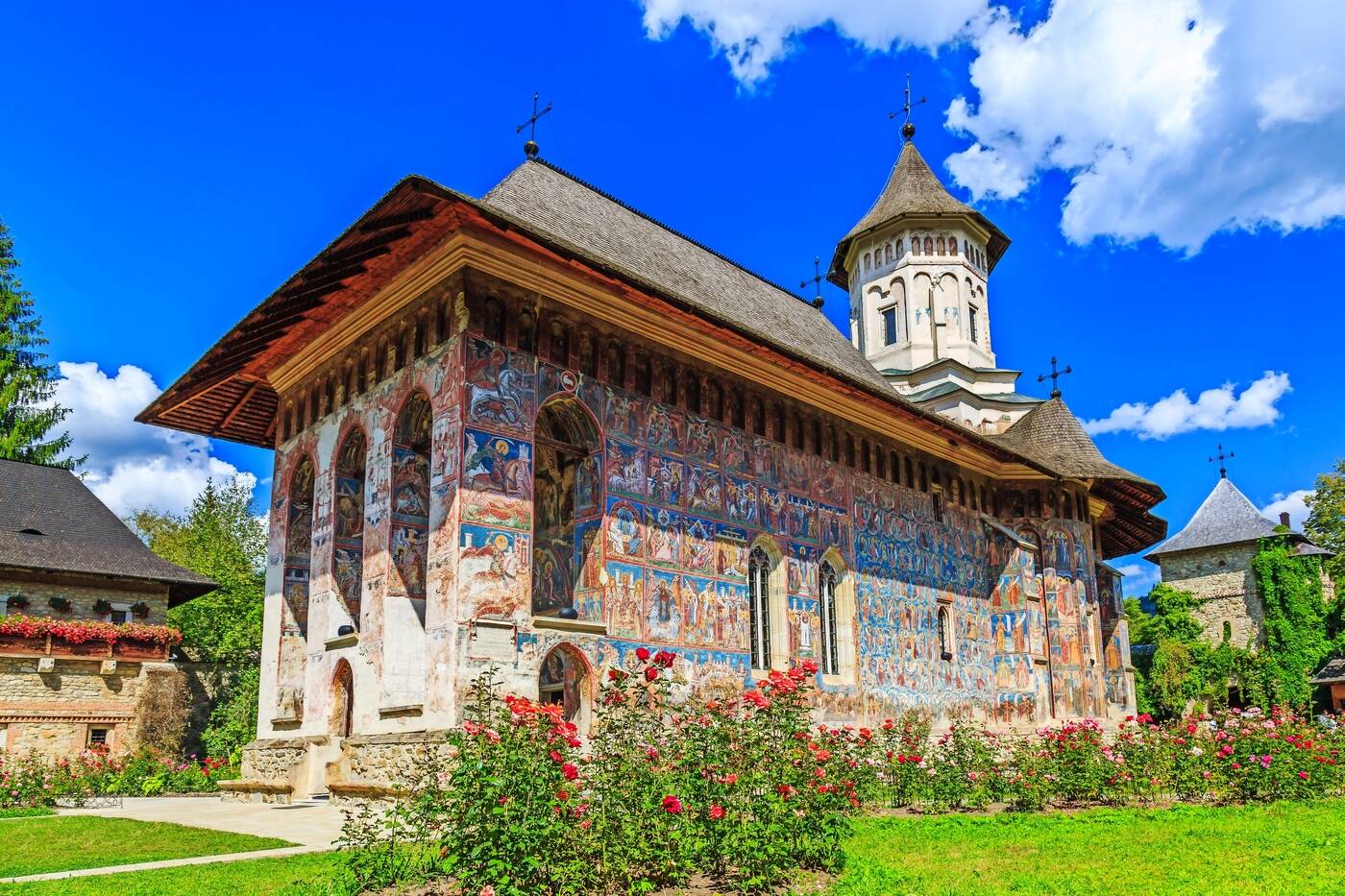 Uns erwarten zwei der berühmten Moldau-Klöster. Wir beginnen mit dem Kloster Moldovita, das mit seinen farbenprächtigen Außenwandmalereien begeistert. Anschließend besuchen wir das Kloster Voroneț, dessen außergewöhnliche Fresken ihm den Beinamen ‚Sixtinische Kapelle Rumäniens‘ eingebracht haben. Weiter geht es zum traditionsreichen Kloster Neamț, Heimat einer der ältesten Mönchsgemeinschaften des Landes. Übernachtung in Piatra Neamt.