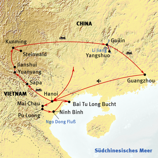 - Von Hanoi bis Guangzhou komplett über Land mit Bus und Zugfahrten