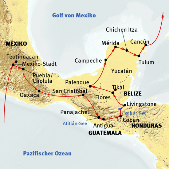 - die Kultur- und Landschafts-Höhepunkte Mesoamerikas