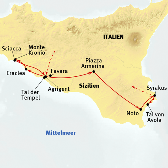 - Intensive, zweiwöchige Rundreise zu den wichtigsten Natur- und Kulturhöhepunkten der Mittelmeerinsel Sizilien