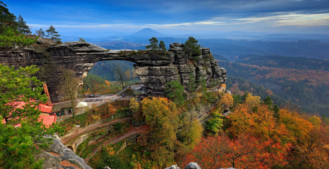 Der Nationalpark Böhmische Schweiz ist ein Paradies für Wanderer. Wir erkunden das beeindruckende Prebischtor, die größte natürliche Sandsteinbrücke Europas, und genießen die spektakulären Ausblicke auf die zerklüftete Felsenlandschaft.