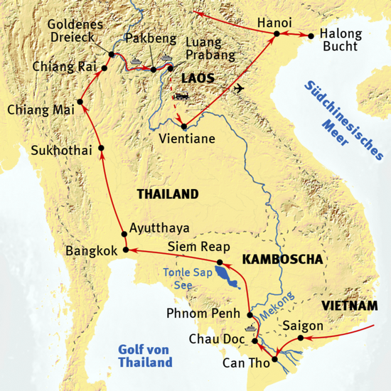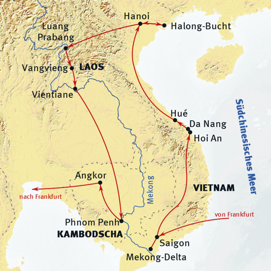 - Besuch zahlreicher UNESCO-Stätten (u.A. Angkor Wat, Halong Bucht, Luang Prabang)