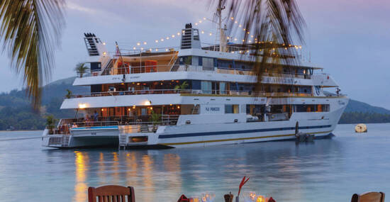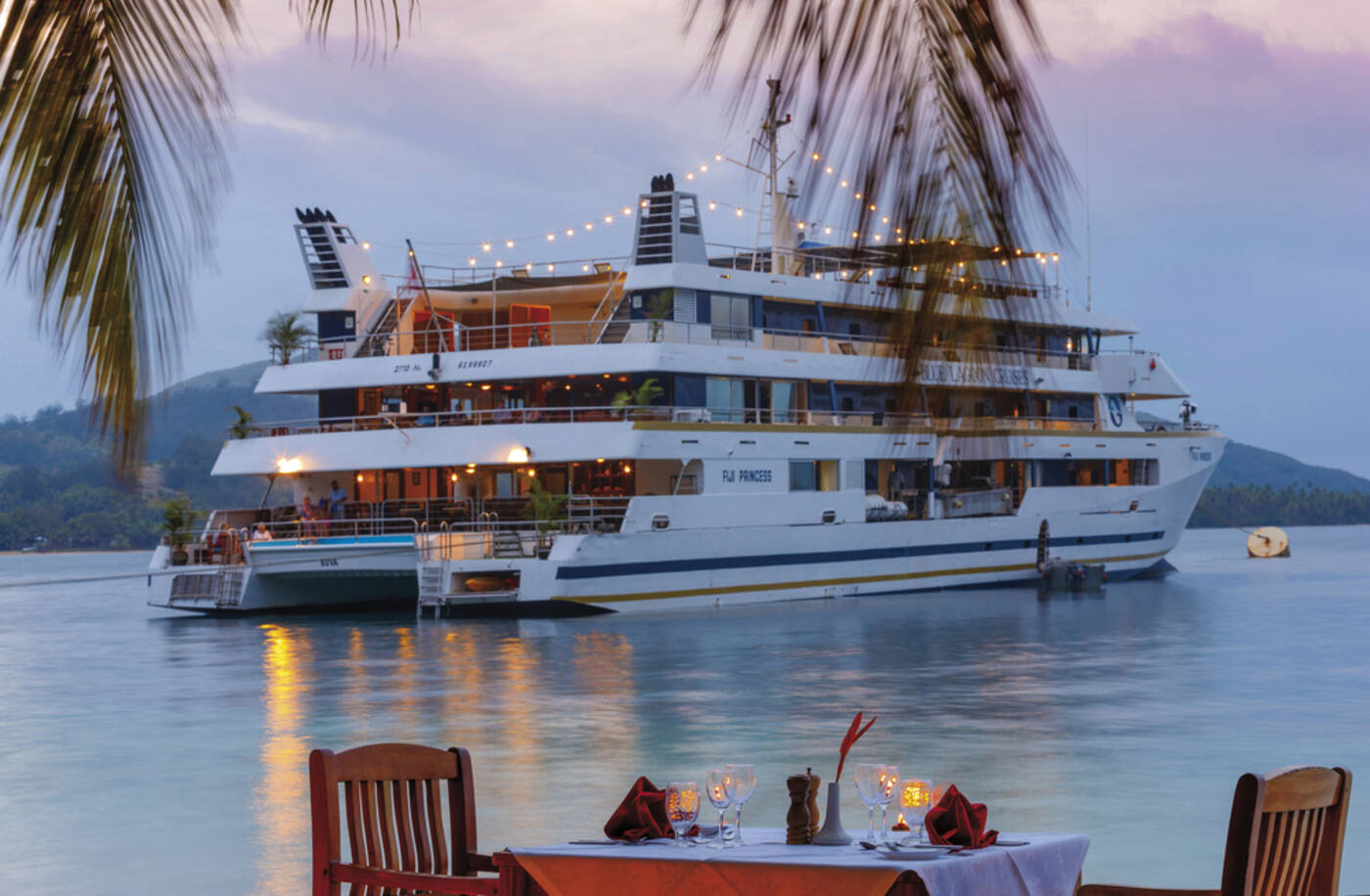 Wir gehen selbstständig zum Passagier-Pier der FIJI PRINCESS, die lediglich bis zu 68 Passagiere beherbergt und damit besondere Exklusivität verspricht. Einschiffung für unsere Kreuzfahrt zur Inselwelt der nördlichen Yasawas und den idyllischen Mamanucas, alles einzigartige Trauminseln mit einsamen Palmenstränden und türkisfarbenen Lagunen.