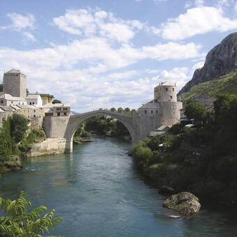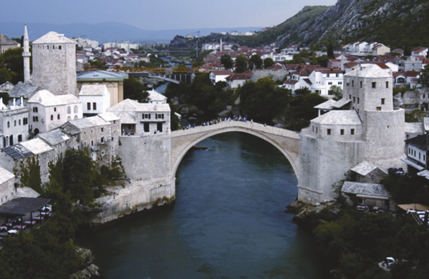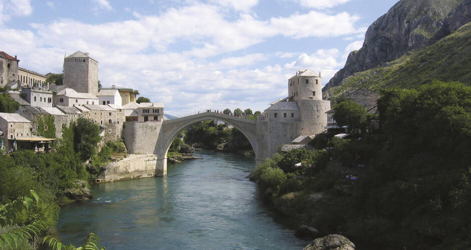 Morgens Fart nach Konjic, das wegen seiner beeindruckenden Natur ringsherum zu Recht als eine der Juwelen von Bosnien-Herzegowina gilt. Die Neretva fließt direkt durchs Stadtzentrum. Besuch von Titos ehemaligen Bunker. Weiterfahrt nach Jablanica, bekannt für die Eisenbahnbrücke über die Neretva, während des Zweiten Weltkriegs von Partisanen zerstört. Besichtigung der Brückenruine sowie des Museums “die Schlacht für die Verwundeten in Neretva". Weiterfahrt nach Mostar und Besichtigung dieser einmaligen Stadt mit der Altstadt und der berühmten wiederaufgebauten "Alten Brücke", die zum Symbol für den Jugoslawienkrieg wurde. Abendessen im Restaurant.