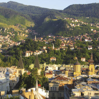 Vorm. Stadtrundgang in Sarejevo mit Rathaus, Nationalbibliothek und dem "Haus des Trotzes". In der Altstadt der Basar-Bezirk Bašcarsija mit den alten Handwerkergassen und dem Sebilj-Brunnen, die Gazi-Husrev-Beg-Moschee (16. Jh.) mit Basar und Medrese, sowie die Kathedrale und der Uhrturm (alles von außen). Wir sehen auch die Stelle des tödlichen Attentates auf Erzherzog Franz Ferdinand und seine Frau Sophie, das 1914 den Ersten Weltkrieg auslöste. Nachmittags freie Zeit, die man mit einem Besuch auf der alten "Weißen Festung" mit Blick über die Stadt nutzen kann oder im Tunnelmuseum, das die Geschichte der Belagerung der Stadt während des Jugoslawienkrieges zeigt. Freie Zeit bis zum traditionellen bosnischen Abendessen.