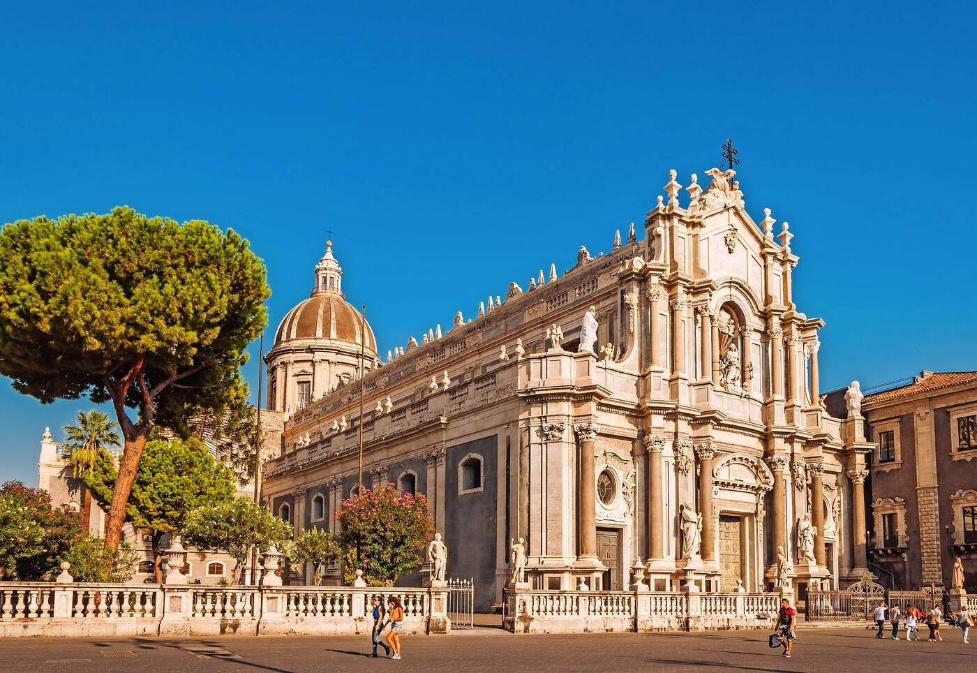 Heute steht die faszinierende Stadt Catania im Mittelpunkt, die auch als „Stadt der Lava“ bekannt ist, da sie größtenteils aus dem Lavagestein des nahegelegenen Vulkans Ätna erbaut wurde. Gemeinsam mit unserem örtlichen Guide schlendern wir die berühmte Via Etnea entlang und bewundern die Überreste des antiken römischen Theaters, den beeindruckenden Dom und die ikonische Elefantenstatue. Ein Highlight des Tages ist ein Abstecher zum Piscarìa, dem lebhaften und bunten Fischmarkt von Catania. Hier haben wir die Möglichkeit, durch die Stände zu bummeln und ein köstliches „Cartoccio“ mit frisch frittierten Fischspezialitäten zu genießen. Am Nachmittag steht uns freie Zeit zur Verfügung, um einzukaufen oder die traumhafte Villa Bellini auf eigene Faust zu erkunden.