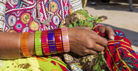 Wir nutzen den Tag um die Dörfer der Region zu entdecken - jedes mit seiner ganz eigenen Kultur, Handwerkskunst und lebendigen Traditionen. In Sumraser lernen wir die Harijan- und Soda-Gemeinschaft kennen, die mit ihrer feinen Scoof-Stickerei eine beeindruckende Handwerkskunst bewahren. Es ist faszinierend zu sehen, wie viel Geduld und Liebe zum Detail in diese filigranen Muster fließt. Weiter geht es nach Nirona, wo wir die Khatri-Muslime besuchen, die nicht nur Glocken herstellen, sondern auch wunderschöne Kunstwerke und feine Spitzenarbeiten fertigen. Die Handwerkskunst hier erzählt von jahrhundertealten Traditionen, die lebendig geblieben sind. In Khavda erwartet uns die muslimische Khatri-Gemeinschaft, die mit ihren Ajrakh-Drucken und kunstvoll bemalten Töpferwaren beeindruckt. Die leuchtenden Farben und Muster spiegeln die Geschichten und den Geist dieser Region wider. In Hodko sehen wir, wie die Harijan-Gemeinschaft kunstvolle Lederarbeiten und Patchwork-Stickereien fertigt – mit viel Liebe zum Detail entstehen so einzigartige Kunstwerke aus einfachen Materialien. Zum Abschluss besuchen wir Ludiya, wo wir beeindruckende Holzschnitzereien bewundern und die farbenfrohen, bemalten Häuser der Harijan-Gemeinschaft bestaunen. Hier zeigt sich, wie eng Kunst und Alltag miteinander verbunden sind und welchen besonderen Charme das Dorf dadurch erhält.