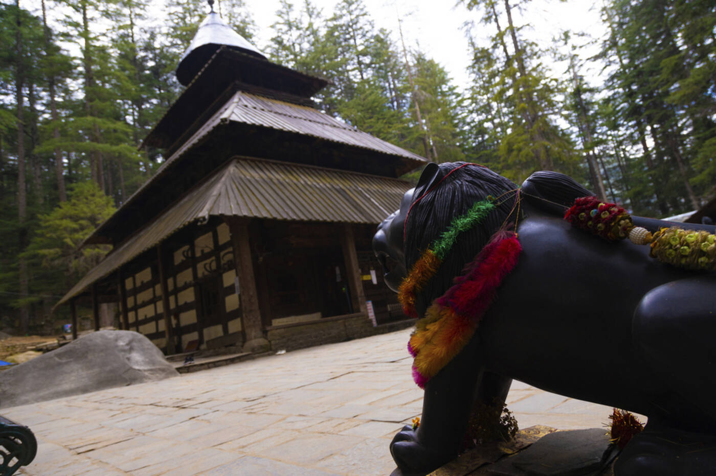 Ein abwechslungsreicher Tag in Manali erwartet uns: Nach einem entspannten Frühstück starten wir gemeinsam unseren Ausflug und besuchen als Erstes den beeindruckenden Hadimba Devi-Tempel, der idyllisch im Schatten hoher Pinien liegt. Dort tauchen wir in die faszinierenden Legenden rund um die Göttin Hadimba ein und bewundern gemeinsam die kunstvolle Holzarchitektur dieses bedeutenden Heiligtums. Danach spazieren wir zum tibetischen Kloster, wo wir die friedliche Atmosphäre genießen, Gebetsfahnen bestaunen und die kunstvollen Wandmalereien entdecken. Im Anschluss fahren wir zu den heißen Quellen von Vashist und lassen uns vom wohltuenden Thermalwasser und dem Alltag des kleinen Dorfes begeistern. Anschließend schlendern wir gemütlich durch die Altstadt von Manali, erkunden gemeinsam die engen Gassen, entdecken landestypische Cafés und stöbern in bunten Geschäften nach traditionellen Handwerksprodukten. Natürlich darf auch ein gemeinsamer Bummel über den lebhaften Basar nicht fehlen, wo wir regionale Spezialitäten und kunstvolles Kunsthandwerk kennenlernen.