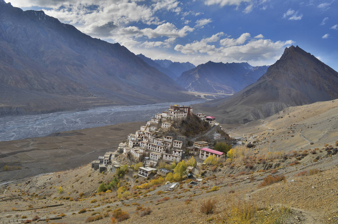Seit gut 20 Jahren ist die faszinierende Gebirgsregion Spiti, heute ein Distrikt des indischen Staates Himachal Pradesh, für Touristen besuchbar. Seitdem gehört ein Reiseprogramm in diese Region auch zum Portfolio von IKARUS TOURS. Die "sensitive" Nähe von Spiti zu Tibet, zumal die politische Gebietszugehörigkeit in einigen Teilen zwischen Indern und Chinesen umstritten ist, veranlasste Indien lange Zeit dazu, Spiti dem internationalen Tourismus nicht zu öffnen. Anders war dies mit Lahaul, das als Anhängsel von Ladakh und Zanskar bereits Mitte der siebziger Jahre des vergangenen Jahrhunderts von internationalen Besuchergruppen bereist werden durfte. Heute zählen Spiti und Lahaul - zusammen mit Ladakh, Bhutan, Sikkim und weiten Teilen Tibets - zu den wirklichen Landschaftsparadiesen, die sich im Verlauf der Gebirgskette des Hoch-Himalayas aneinanderreihen. Doch mehr noch zählen bei einigen Reisefreunden die Substanz an Kulturgeschichte, an Zivilisation, die anthropologischen Attraktionen, die in Spiti-Lahaul einsehbar und erlebbar sind. Hier leben vorherrschend Tibeter - wenn auch nicht alle im strengen ethnologischen und religionswissenschaftlichen Sinne Tibeter sind. Obwohl auch in Spiti inzwischen der technische Fortschritt Einzug gehalten hat, wird das tägliche Leben in den Dörfern auch heute noch vom Buddhismus dominiert, der Lebensstandard ist noch immer recht bescheiden. Spiti ist ein wahres Landschaftswunder, eine Bergwüste von faszinierender Formation. Durch fast völligen Ausfall von Niederschlägen kann sich kaum eine Vegetation auf dem felsigen Boden entwickeln. Spiti ist exakt so, wie man sich eigentlich Tibet, das Hochplateau von Tibet und seine nackten Felswände, vorstellt.