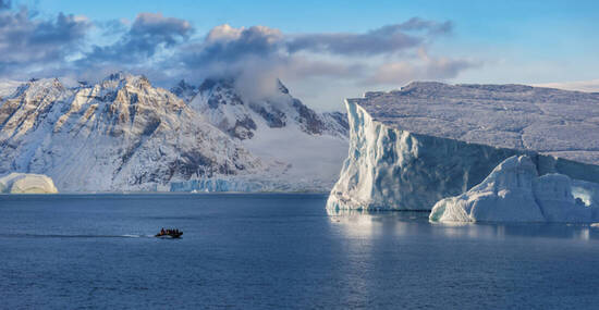 Ostgrönland präsentiert einige der eindrucksvollsten Landschaften der Arktis: Tiefe Fjorde und enge Kanäle, eingerahmt von schroffen, mit Eis bedeckten Bergen, die bis zu 2.000 Meter in den Himmel ragen, sowie Gletscher, die riesige Eisberge in das verzweigte Fjordsystem entlassen.