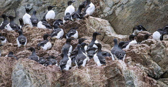 Ein Großteil der unberührten Natur Spitzbergens ist durch ein System von Nationalparks geschützt, und der erste auf unserem Weg wird der Nordwest-Spitzbergen-Nationalpark sein, der das Kronjuwel von Spitzbergens landschaftlichen Wundern darstellt. Dieses Gebiet ist bekannt für seine tiefen Fjorde, die von zerklüfteten Gebirgsketten flankiert werden, und die riesigen Gezeitengletscher, die Eisberge in das türkisfarbene Wasser kalben. Am Himmel tummeln sich Millionen von Dickschnabellummen, Trottellummen und kleinen Auks, deren Eier gerade in den zahlreichen Brutkolonien auf kleinen Inseln, Berghängen und Meeresklippen schlüpfen.