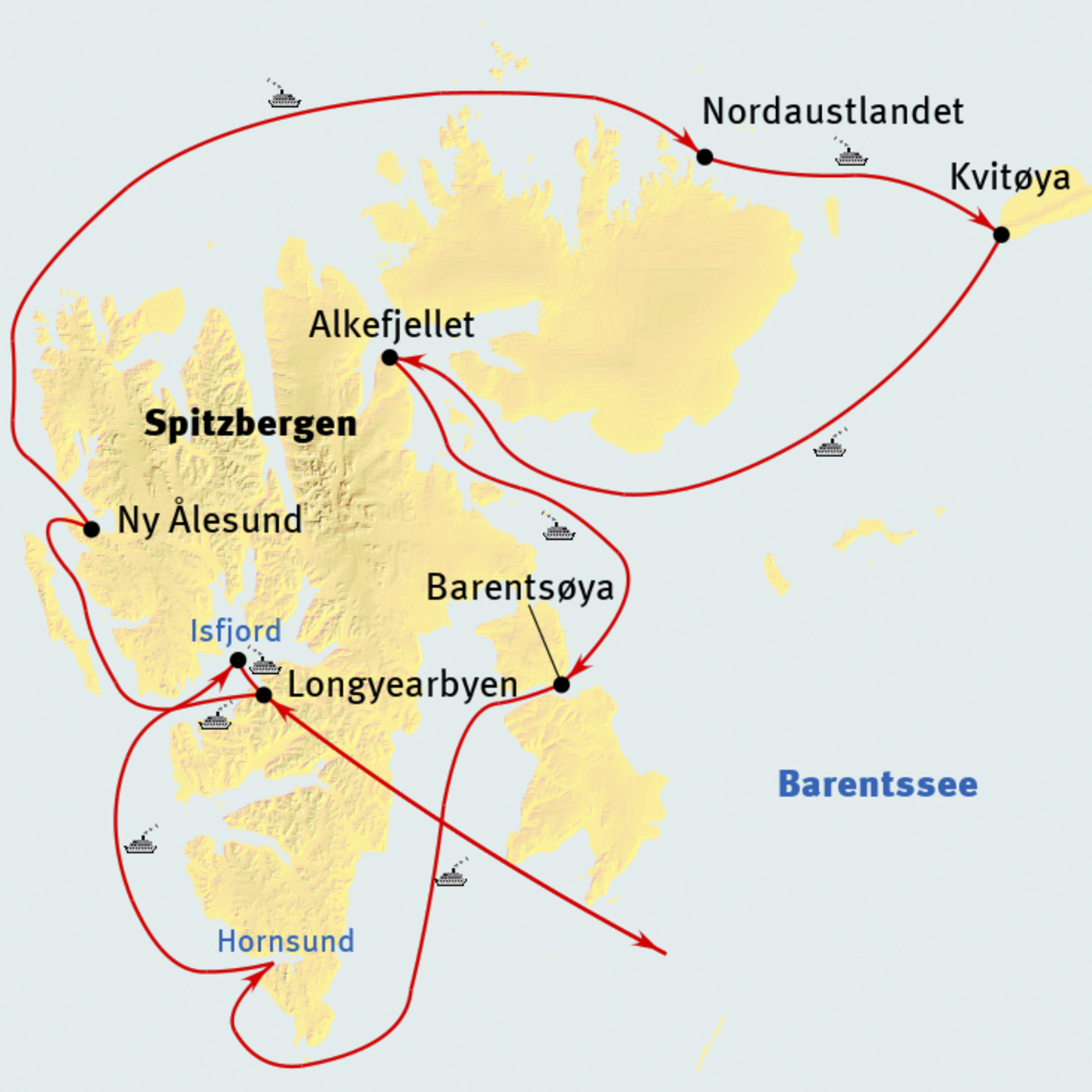 Longyearbyen - Ny Alesund - Nordaustlandet - Kvitøya - Alkefjellet - Barentsøya - Hornsund - Isfjord - Longyearbyen