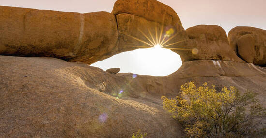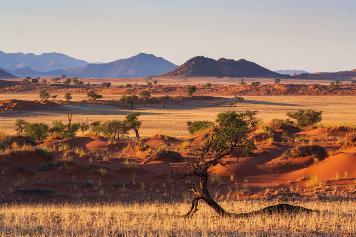 Die älteste Wüste der Erde wartet auf uns. Es geht zunächst in ein privates Naturreservat. Einfache Zeltchalets an Felshügeln bieten einen fantastischen Blick in die Wüste. Spätnachmittags der Ausflug im offenen Fahrzeug zu den nahegelegenen Mamorbergen, wahrscheinlich mit Sichtung von Oryx, Springböcken und Straußen. Die Sonne verabschieden wir mit einem Sundowner in der Hand. Abends das BBQ-Dinner unter Milliarden von funkelnden Sternen, gefühlt so nahe, dass man sie anfassen kann, ein atemberaubender Anblick.