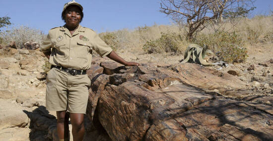 Abfahrt, das schroffe Damaraland wartet auf uns. Halt am Versteinerten Wald, eine Ansammlung von perfekt konservierten, ca. 280 Millionen Jahre alten Baumstämmen, einst durch Ende einer Eiszeit und Flutkatastrophe hierher geschwemmt. Zwischen massiven Felsen und uralten Mopane-Bäumen steht unser einfaches, rustikales Zeltcamp. Vorhandene Wasserresourcen laden die Wüstenelefanten regelmäßig zum trinken ein, vielleicht sogar heute Abend während des BBQ-Dinners.