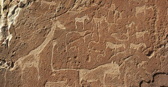 Vormitttags suchen wir aus einem offenen Fahrzeug heraus die Wüstenelefanten in/entlang der trockenen Flussläufe von Huab oder Ugab. Spätnachmittags Rundgang bei Twyfelfontein, wo die San ihre Erlebnisse und Eindrücke auf Felsplatten eingraviert haben, Jahrtausende alt. Abends "Busch-Fernsehen", wir sitzen gemütlich am flackernden Lagerfeuer.