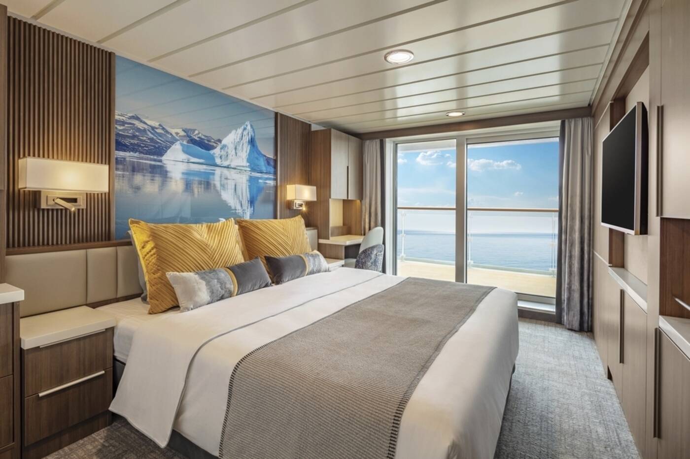- Kat. F = Zweibettkabine Superior, Deck 4 & 6, Doppelbett oder zwei Einzelbetten, Du/WC, TV, privater Balkon, ca. 26 - 30 m²