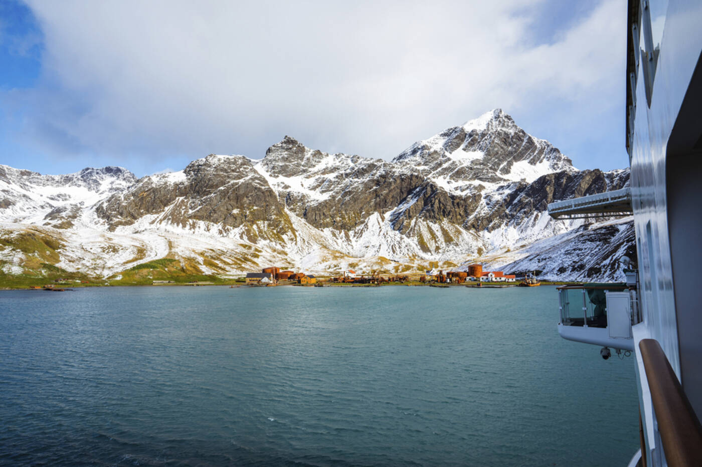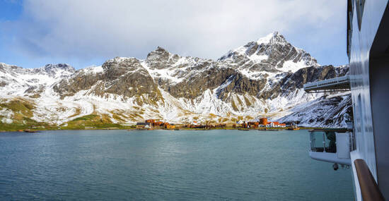 Mit unserem Expeditionsschiff kreuzen wir durch Fjorde mit hoch aufragenden Klippen aus uraltem Gestein. Dies ist ein großartiger Moment, um es sich in der Observation Lounge gemütlich zu machen oder zur Brücke zu gehen, um ungestörte Ausblicke auf die majestätische Küste Südgeorgiens zu genießen.
