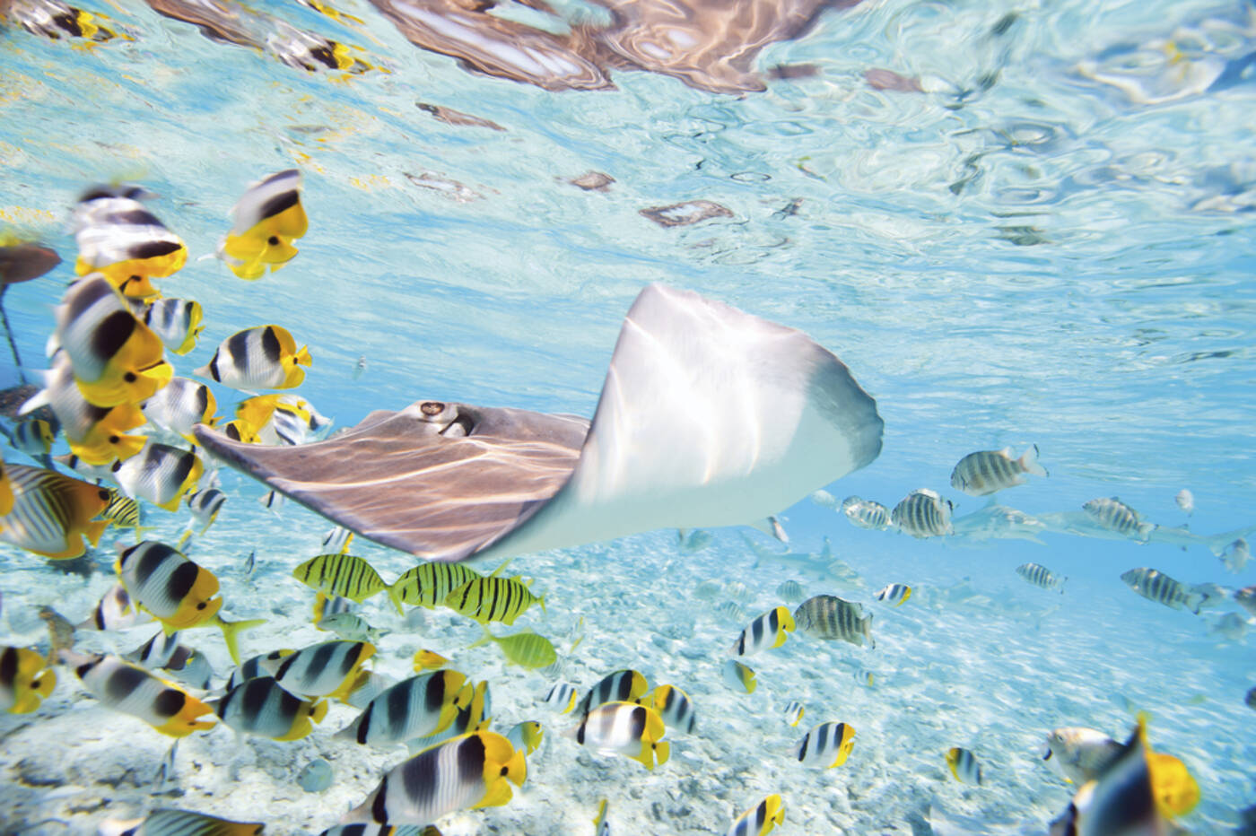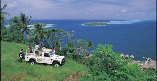 Bora Bora bietet viele Möglichkeiten: Eine Inselrundfahrt in einem typischen "Truck", eine Jeeptour führt hinauf zu Aussichten von oben, ein Ausflug in das Lagoonarium oder eine Fahrt mit dem Glasbodenboot. Unvergesslich ein Rundflug mit dem Hubschrauber über die Lagune!
