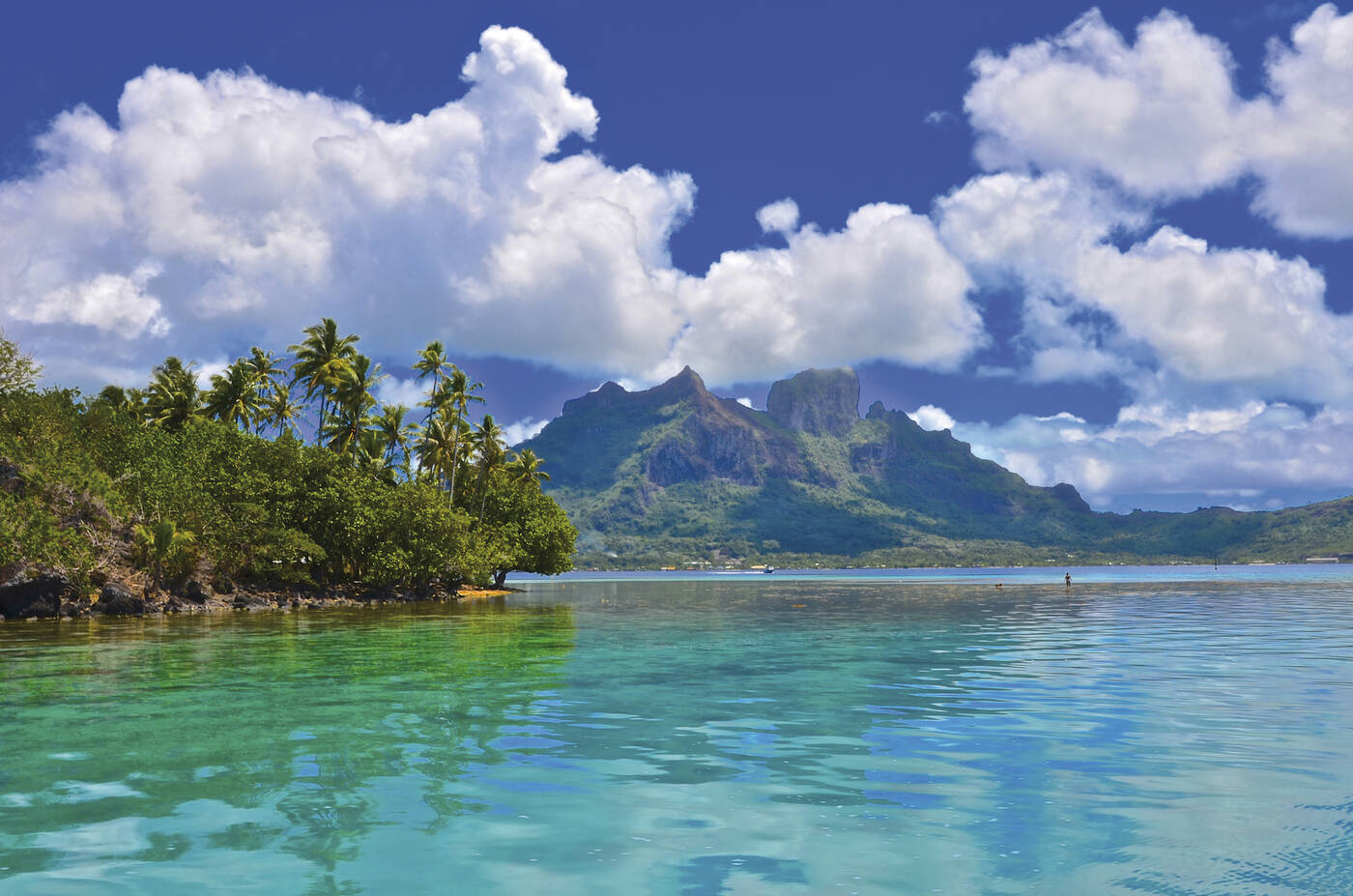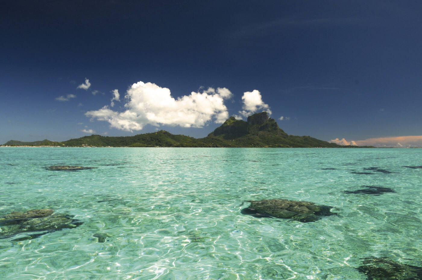 Mittags kurzer Flug von Raiatea nach Bora Bora, der "Perle von Polynesien". Die dramatischen Landschaftsformationen sind schon beim Anflug überwältigend. Die vulkanische Insel, geprägt von der Silhouette der Berge und umgeben von einem Kranz kleiner, vorgelagerter "Motus", gilt zu Recht als eine der schönsten Inseln der Welt. Nach der Landung Bootsfahrt durch die riesige, türkisfarben schillernde Lagune zur Hauptinsel. Unterbringung in einem Bungalow in unserer Pension am Matira Point (3 Nächte).