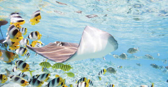 Auf Moorea bietet sich eine große Auswahl an Ausflügen an: Eine Inselrundfahrt mit Auffahrt zum Aussichtspunkt Belvédère, eine Jeep-Safari oder eine Wanderung auf dem alten "Coconut-Trail". Lohnend auch Schnorcheltouren und Lagunenfahrten, dabei erleben wir Rochen hautnah und genießen ein Inselpicknick mit Blick auf die grünen Vulkangipfel.