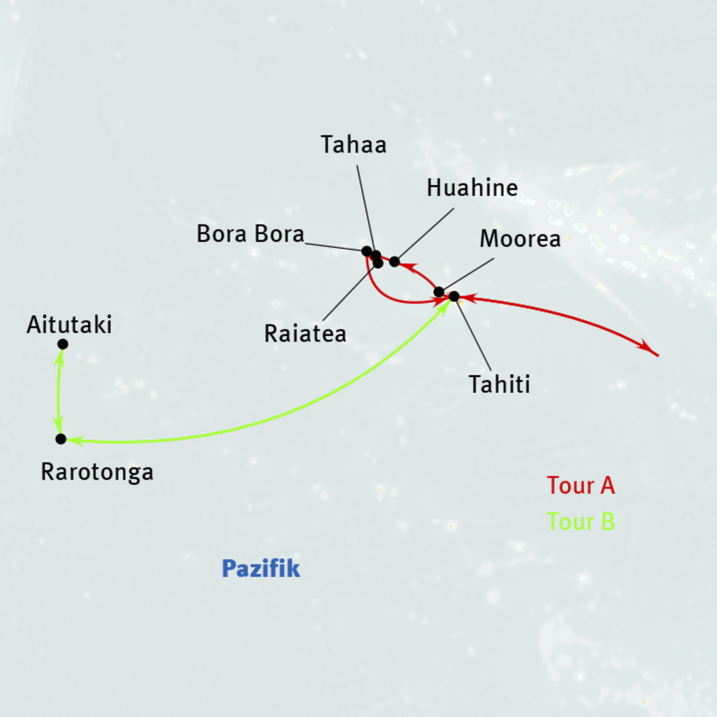 Tahiti - Moorea - Huahine - Tahaa - Raiatea - Bora Bora - Rarotonga - Aitutaki - Atiu