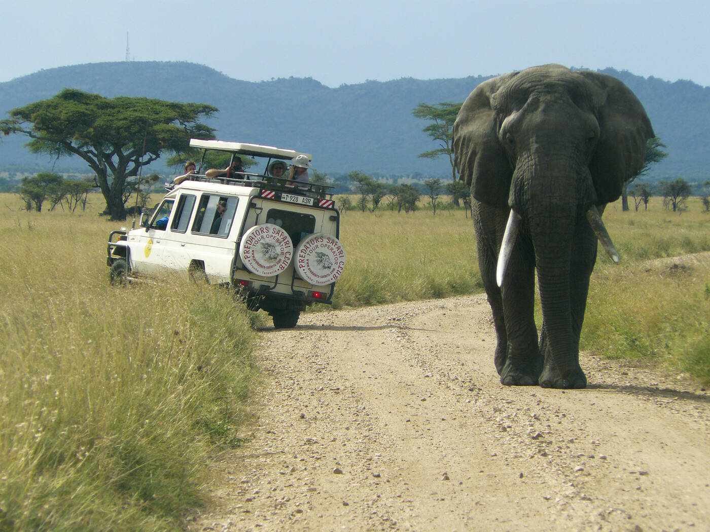 Ein langer Fahrtag. Es geht durch das ländliche Tanzania in den Mikumi-Nationalpark. Kein eigenständiger Park, sondern der nördliche Teil des gigantischen Nyerere-Nationalparks. Bergketten begrenzen den Park an zwei Seiten und die Mkata-Schwemmebene mit ihrer unendlichen Weite lässt an die Ebenen der Serengeti erinnern. Unser Camp liegt inmitten des Parks auf einem Felshügel. Die großen Zelte überblicken das Mwanamboga-Wasserloch.