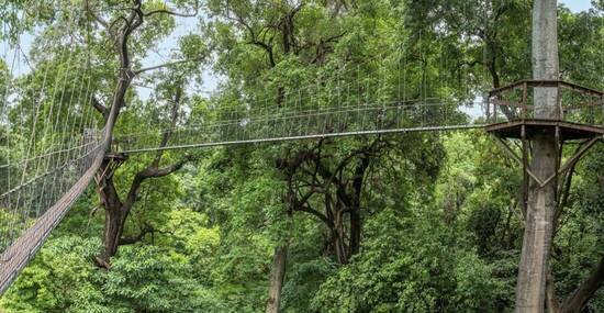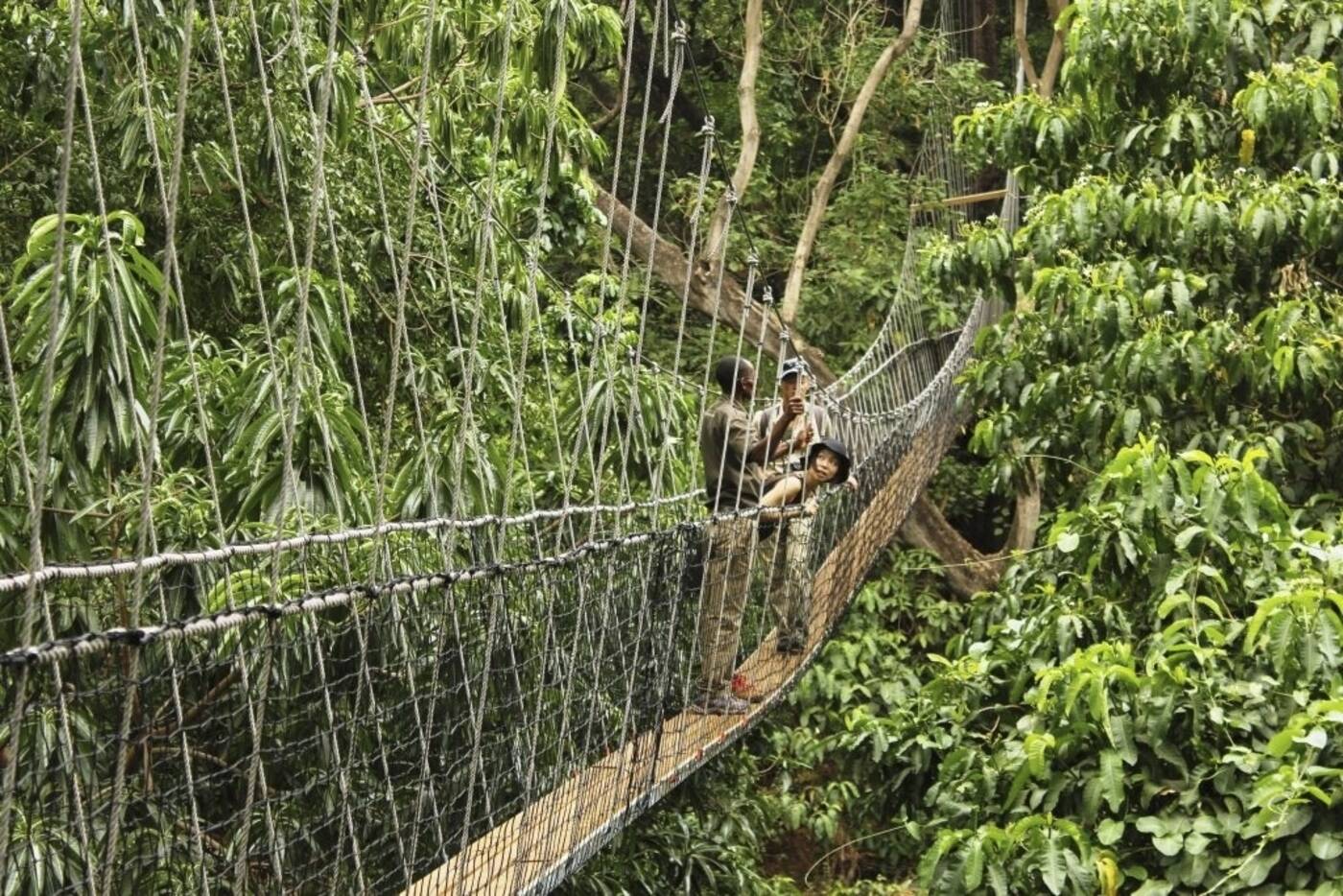 - eine Fußsafari in luftiger Höhe zwischen großen Bäumen