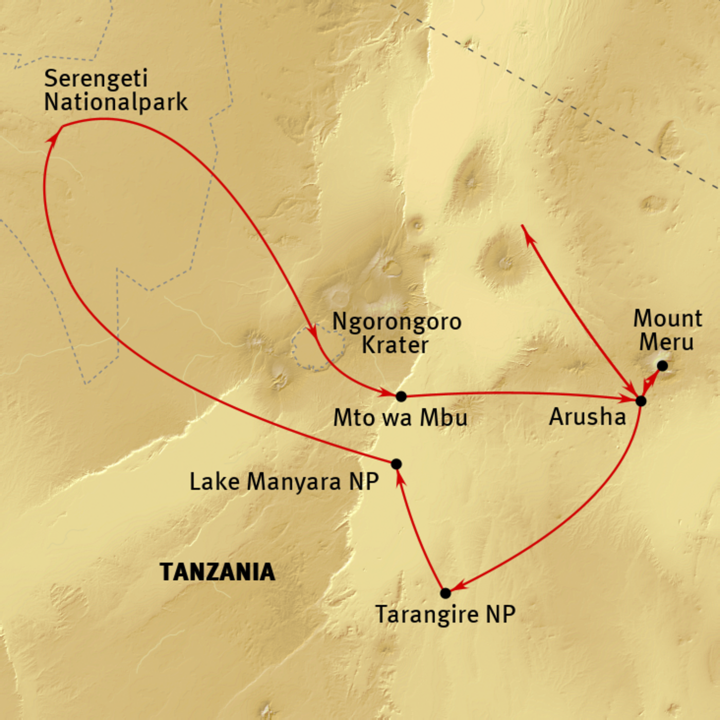 Arusha - Tarangire-Nationalpark - Lake Manyara-Nationalpark - Serengeti - Ngorongoro-Krater