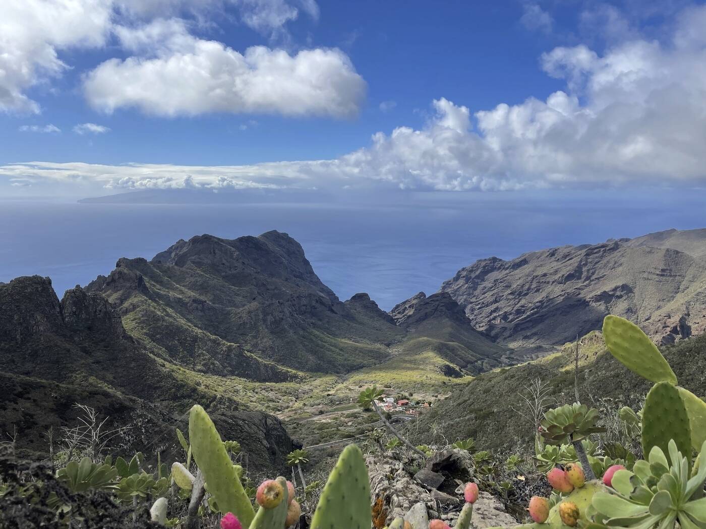 Nach dem Frühstück fahren wir zum wunderschönen Bergdorf Masca (Fahrtzeit ca. 1 Std.), wo wir am Aussichtspunkt von "Altos de Baracán", der einen sagenhaften Blick auf Masca und auf die "Isla de Baja" eröffnet, unsere heutige Wanderung beginnen. Unser Weg führt uns bergab nach Punta de Teno und bietet uns traumhafte Ausblicke und ganz viel unberührte Inselwelt. Picknick. Den Strand von Punta Teno, dem westlichsten Punkt von Teneriffa, erreichen wir am Nachmittag. Bevor wir wieder zurück zum Hotel fahren, haben wir noch die Gelegenheit im Meer zu baden (Gehzeit ca. 4-5 Std., 1.100 m↑, 100 m↓, 10,5 km).
