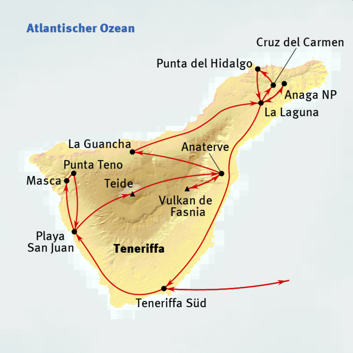 Santa Cruz de Tenerife - Playa San Juan - Masca - Punta Teno - Teide - Anaterve - Vulkan de Fasnia - La Guancha - La Laguna - Anaga NP - Cruz del Carmen - Punta del Hidalgo