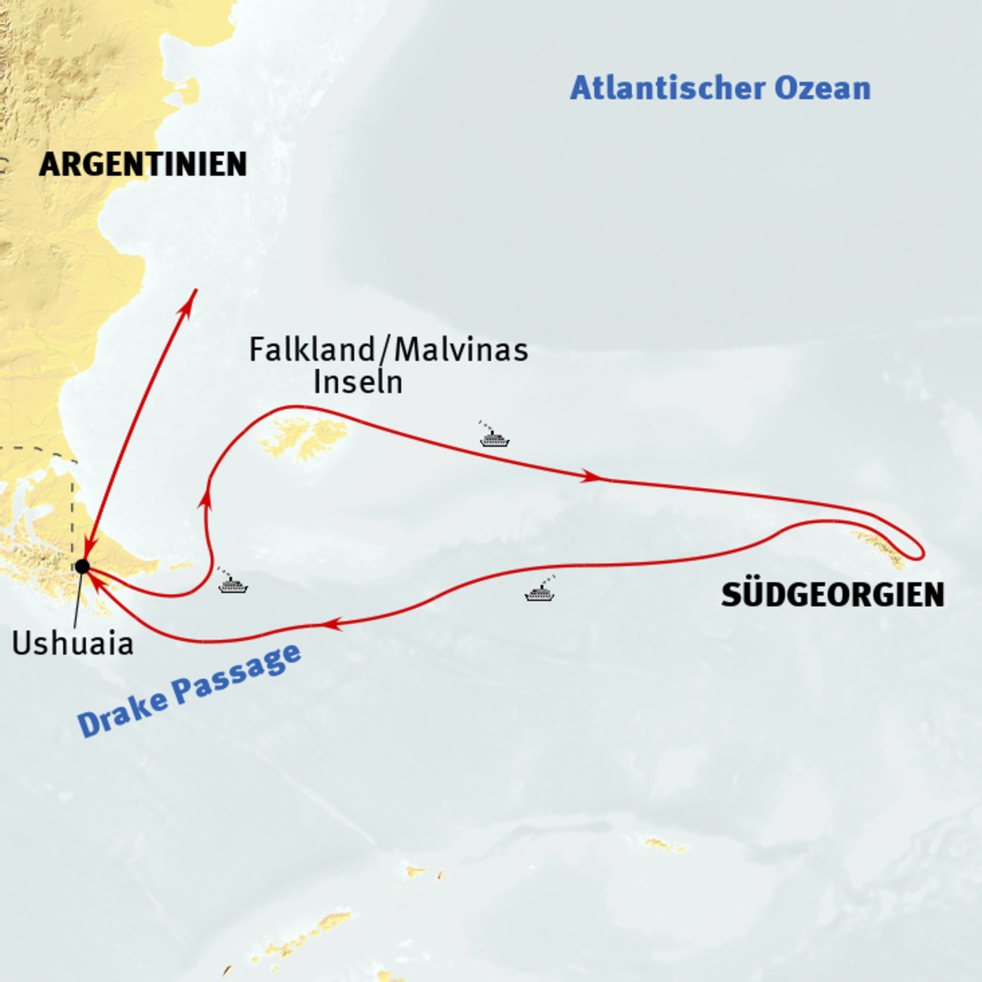 Buenos Aires - Ushuaia -Falkland Inseln - Sürdgeorgien - Ushuaia - Buenos Aires