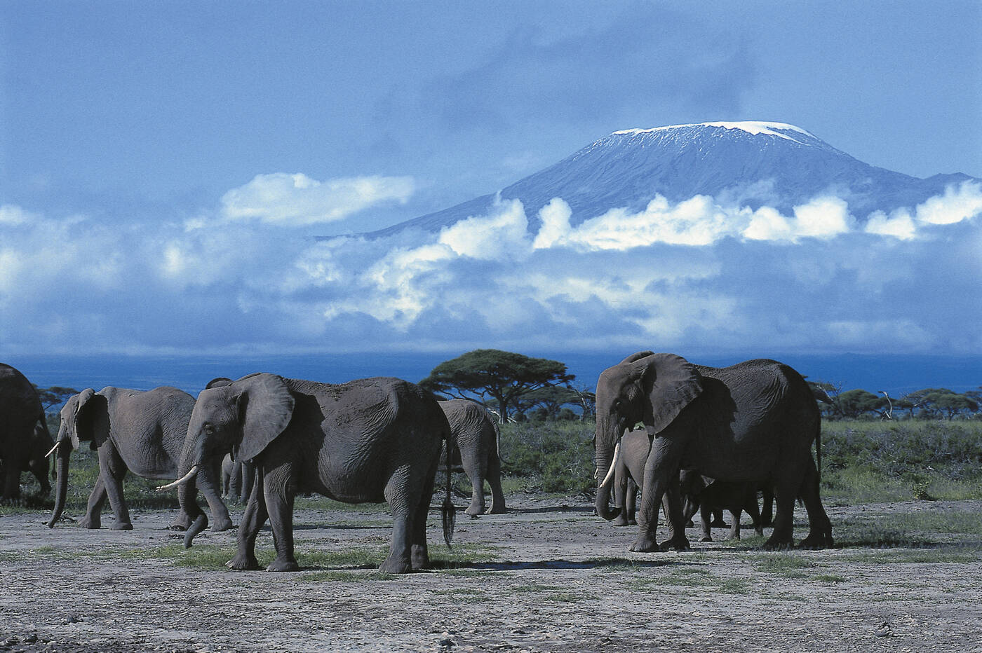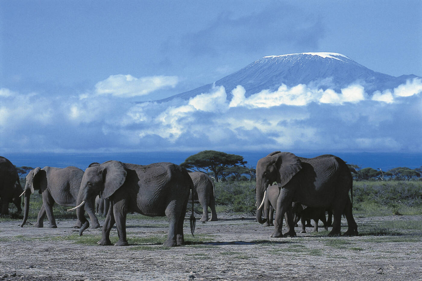 Der Amboseli-Nationalpark liegt malerisch am Fuße des Kilimanjaro und beeindruckt mit einer abwechslungsreichen Landschaft: Akazienhaine, offenes Grasland, Dornengebüsch und Sumpfgebiete wechseln sich harmonisch ab. In diesem einzigartigen Lebensraum begegnen wir zahlreichen Tieren der ostafrikanischen Tierwelt. Bei mehrstündigen Safaris am Vor- und Nachmittag erleben wir die Natur hautnah. Unvergesslich bleibt der Moment, wenn eine Elefantenherde gemächlich an uns vorbeizieht und im Hintergrund der schneebedeckte Kilimanjaro majestätisch aufragt.