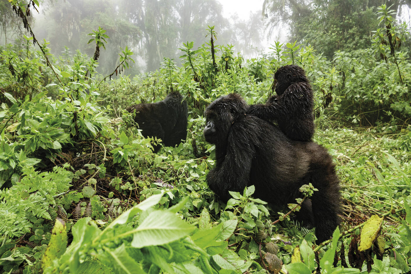 Nach dem Frühstück geht es zum Eingangstor, wo wir unseren lokalen englisch spr. Ranger treffen. Er führt uns – ohne den deutsch spr. Safarileiter – durch den beeindruckenden Bergregenwald zu den Gorillas: für viele ein "Bucket-List"-Traum. Trittsicherheit und Ausdauer sind dabei unerlässlich; manchmal muss unser Ranger mit dem Buschmesser den Weg freischlagen, es geht stetig auf und ab. Mit etwas Glück stehen wir ganz plötzlich den faszinierenden Gorillas gegenüber und dürfen etwa eine Stunde bei ihnen verweilen und sie aus nächster Nähe beobachten.