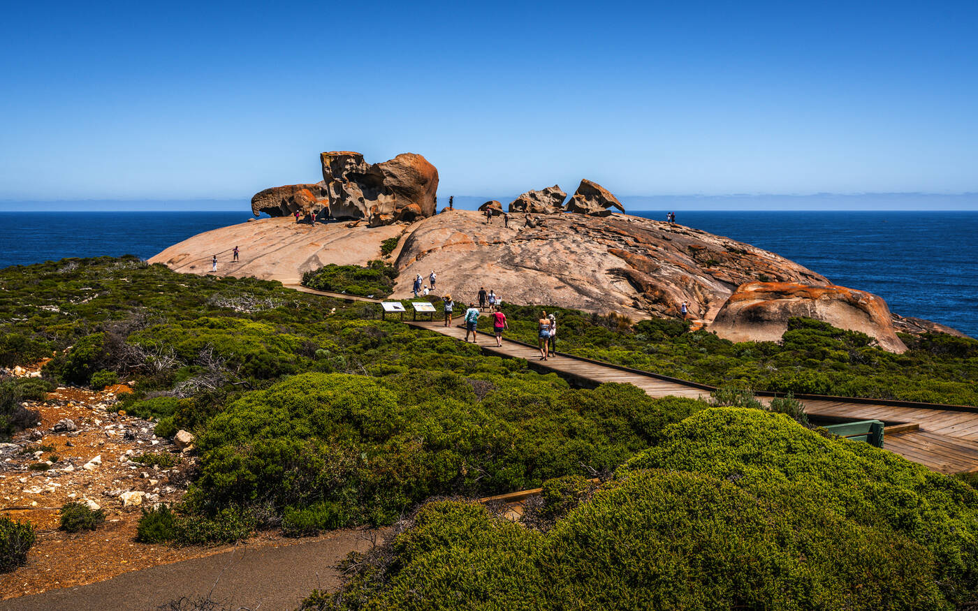 Ein weiterer Höhepunkt der Reise ist der Besuch von Kangaroo Island mit seiner faszinierenden Tierwelt und beeindruckenden Küstenlandschaften. Wir erkunden die bekannte Seal Bay mit ihrer Population von Australischen Seelöwen sowie den Flinders Chase Nationalpark, wo uns die fantasievollen Felsformationen der Remarkable Rocks oberhalb der schäumenden Meeresküste erwarten. Mit etwas Glück haben wir auch weitere tierische Begegnungen auf der Insel und sehen Koalas oder auch Kangurus, die der Insel den Namen gegeben haben, in freier Wildbahn.