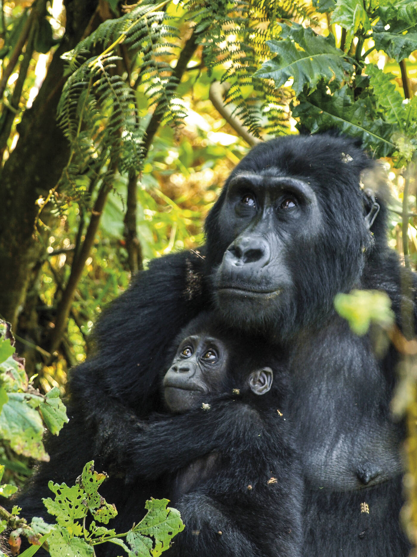 Ein ganz besonderes und außergewöhnliches Reiseerlebnis zu den Menschenaffen an den Berghängen Ugandas erwartet die Teilnehmer dieser Expeditions-Reise. Für jeden Naturliebhaber ist es garantiert ein bewegendes Erlebnis, vor einigen der letzten Berggorillas zu stehen und sie fasziniert in ihrem natürlichen Habitat zu beobachten. Ein erfahrener Silberrücken führt den Familienverband an und wir beobachten, wie das funktioniert. Mit etwas Glück kommen die Tiere recht nahe an uns heran. Uganda begeistert aber noch mit weiteren "Schönheiten": im Ziwa-Schutzgebiet Breitmaulnashörner, im Budongo-Forest Schimpansen und andere der neun Primaten und im Mgahinga-Nationalpark Goldmeerkatzen. Eine Bootsfahrt und eine Nachtsafari ergänzen unsere naturnahen Erlebnisse. Zwischendurch erwarten uns auch kulturelle Begegnungen inmitten herrlicher Landschaftsszenerien. Besonders vorteilhaft an dieser Tour, wir müssen die Tierwelt, die Ursprünglichkeit und die herrlichen Landschaftspanoramen nicht mit Touristenmassen teilen.
