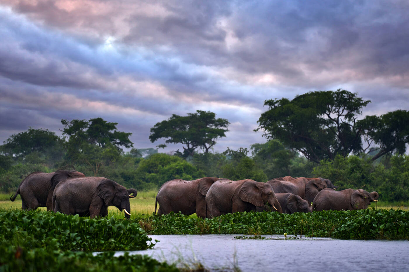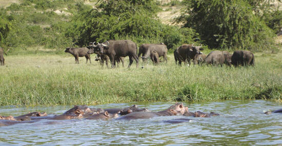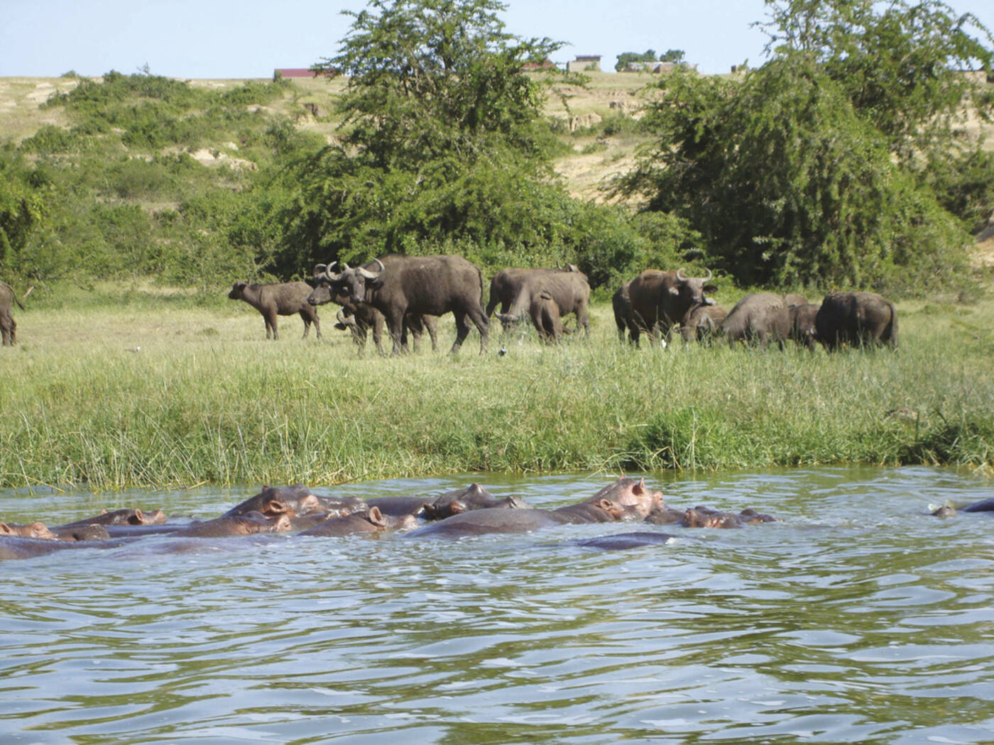Heute müssen wir aufmerksam sein und die Kamera bereit halten. In malerisch schöner Gegend entlang der Explosionskrater, in denen sich Süß- oder Salzwasserseen befinden und mit Blick auf das tiefer liegende Western Rift Valley, geht es auf Safari. Hier wandern große Elefanten- und Büffelherden umher. Auch sind die Chancen groß, auf Löwen zu treffen. Am Nachmittag der nächste Höhepunkt: eine Bootsfahrt auf dem Kazinga-Kanal, eine natürliche Wasserstraße zwischen Eduard- und Georgsee, bietet eindrucksvolle Tiersichtungen. Vom Boot aus beobachten wir Büffel, Elefanten und Nilpferde. Im seichten Wasser und an den Uferbänken tummeln sich scharenweise Wasservögel, wie Kormorane und Schwarzhalsreiher.
