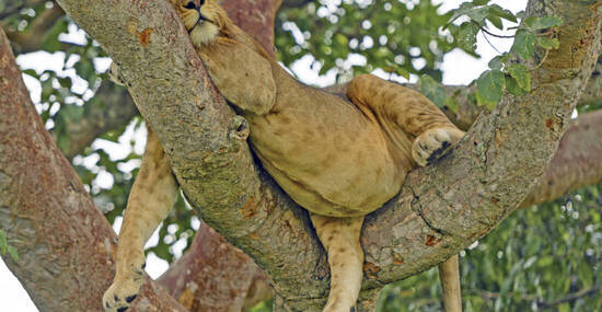 Achtung Löwen: Im südlichen Teil des Parks pirschen wir um die afrikanischen Feigenbäume, beliebte Schlummerplätze der Baumlöwen. Sie ruhen gerne auf den dicken Ästen hoch oben in den luftigen Baumwipfeln, entgehen so der Hitze am Boden. Dann geht es weiter in ein kleines Fischerdorf am Lake Edward. Wir erfahren hier in einem persönlichen Gespräch Interessantes über den Alltag der Fischerfamilien.