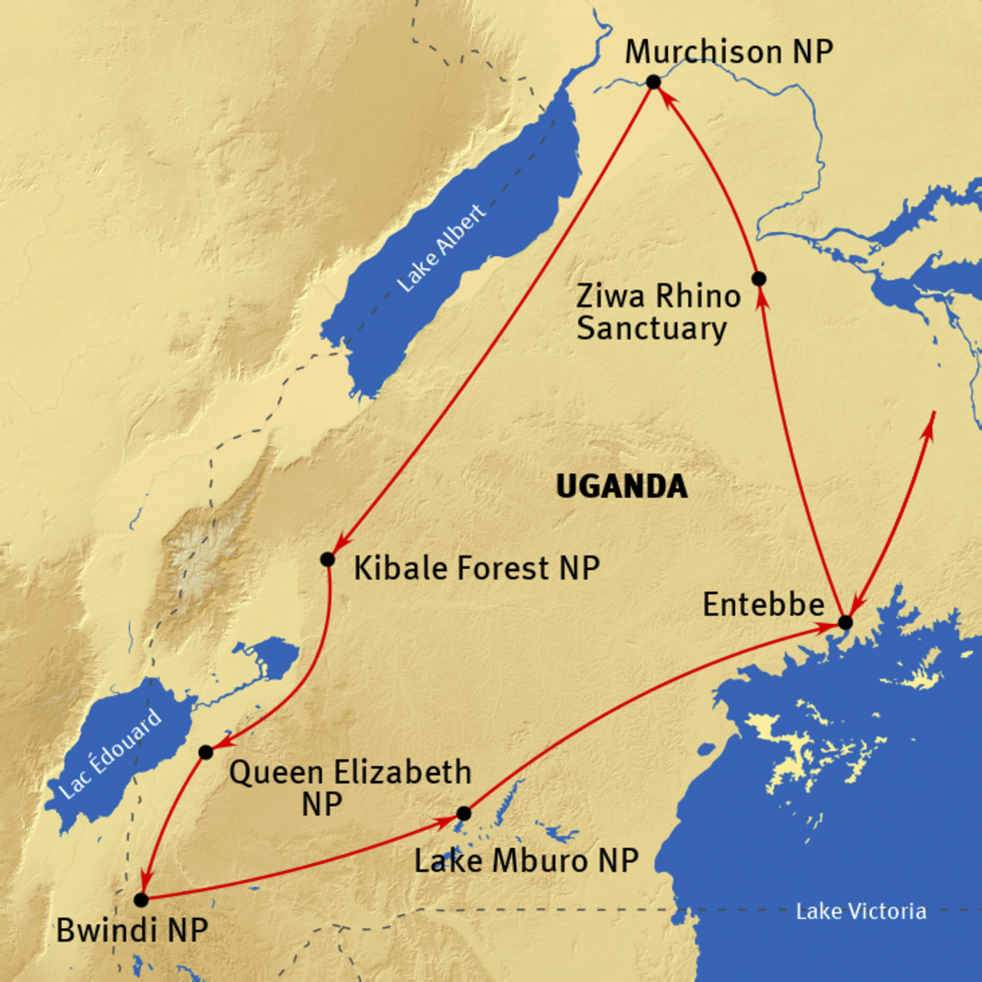 Entebbe - Kampala - Kibale Forest Nationalpark - Queen Elizabeth Nationalpark - Lake Mutanda - Lake Mburo Nationalpark